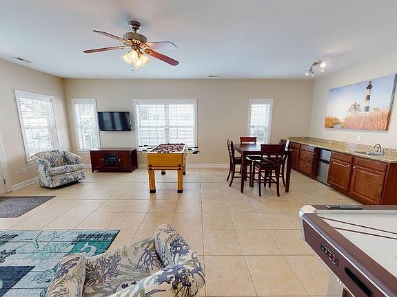THE ULTIMATE BEACH HOUSE!!!Only 3 blocks by foot or golf cart to the shore!.Bring your friends,family and have the time of your life!! This beauty offers 5 bedrooms and 5 full baths!.Ground level has large recreation room with tile floors,mini bar with sink,small refrigerator, foosball, air hockey tables and full bath. Up the stairs to second level and you will gaze into gourmet kitchen with gorgeous custom cabinets,tile back splash, stainless appliances, granite counter tops and breakfast bar. Huge primary suite down the hall with new carpet,jetted tub ,separate shower,and dual lavatories with granite counter tops. Up the stairway to level 3 where you find bedroom # 2 with new carpet,walk in closet,and its own full bath. Bedroom 3 is very spacious and has its own full bath. Bedroom 4 has 2 queen beds ,new carpet and its own full bath. Bedroom 5 is gigantic ,has a wet bar ,small refrigerator, and double doors that lead to a balcony. Every level has an outside patio or balcony. !Furnishings throughout the home are beautiful!!Not to be forgotten, take a dip and relax in the sparkling swimming pool!!Completely fenced yard for privacy! What a Beach Home!!!!!Minutes from Barefoot Landing ,convenient to Wilmington, Charleston, restaurants, shopping ,golf courses and all attractions that Myrtle Beach has to offer. The opportunities are endless in this home as a primary residence or second home . Has potential to sleep numerous people . TV's in all bedrooms ,rec room and family room!!!! Sold furnished!!!!!Love where you live!!!! This home is stunning!!