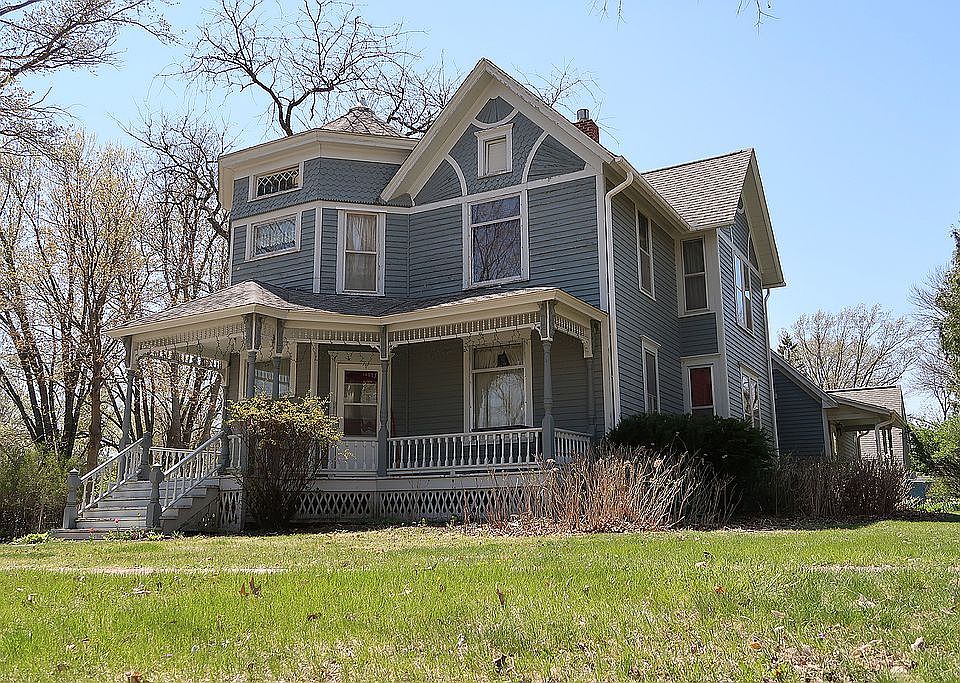 Selling at auction Saturday, June 24th, 1:00 pm for the Donald A. Stine revocable trust. Built in 1896 by Cornell College music professor, William G. Van Valkenbery and known as the "Van Valkenbery" house. This strikingly unique Queen Anne is listed in the Ash Park National Historic District and was the first home built in this district. The hexagonal pointed stair tower and the fish scale shingles were added in 1904. The home features a second servants' stairway off the back kitchen and would be the perfect entry for a possible B & B. Other charming features include leaded beveled glass windows, original fireplace, original woodwork and two spacious half attics, each with separate entries. The home is abound with romantic features and classic touches throughout. Also included is a two story 900 sq foot two-car garage with seperate office/workshop and enclosed stairway