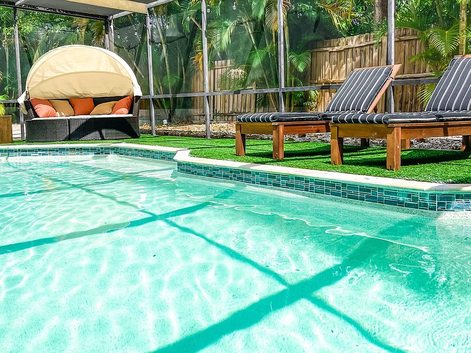 Pet Friendly, Massive 5000 Sq Ft Beach House easy drive to the beach and steps to the bay. 2-King Suite, 8-Bedrooms total w/6 Private Full Baths, sleeps up to 20. Offers unlimited space and privacy for multiple families. With the 85" TV Home Theater, Living Rm, Billiard Rm, Game Rm, Outdoor Ping Pong Table & Heated Pool, it's likely you won't see all your guests until you sit at the custom 12' dinner table. Only 1 mile to the Palma Sola Causeway and a few more miles to Anna Maria Island. 1 Month Lease. The owner pays for all utilities and operating expenses.