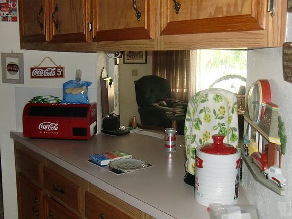 Edge of town living in this three-bedroom, two bath manufactured home. This one owner property has lots of living space with a large family room and dining addition on the back, which includes a corner fireplace. The large kitchen has a center island, too. Attached double garage; detached single garage and workshop; patio, covered front porch.