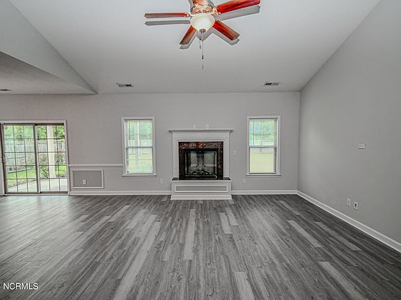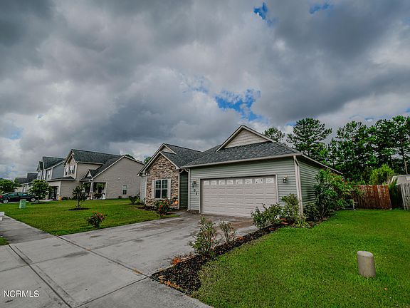 Welcome to this beautiful, three-bedroom, two-bath home, with an attached two-car garage. The family room features a cozy fireplace for those chilly winter nights. The owner's suite offers plenty of space with its large Walk-in closet. The master bath has a dual vanity sink and a soaker tub with a separate shower.  New flooring throughout and all new paint. New stainless steel appliances. Enjoy the fenced-in backyard with a country feel. While having the convenience of a short drive to area shopping, restaurants, and gorgeous North Carolina beaches.