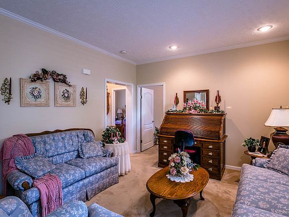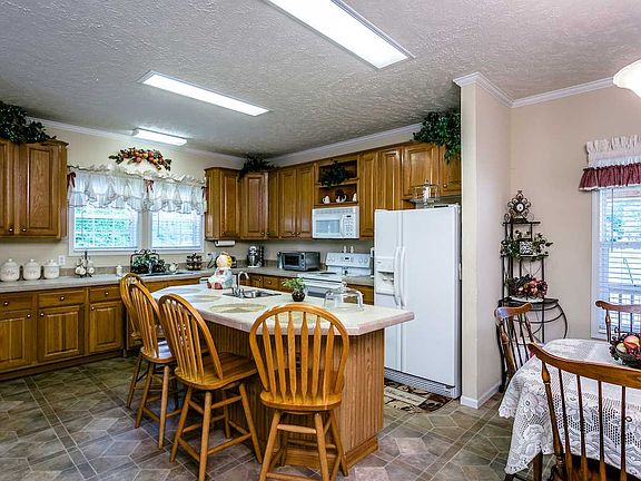 Immaculate one owner move in ready home situated on 0.42 acre lot. Three bedrooms, two baths, formal living room, dining room, family room with stone fireplace wood burning with gas logs open to kitchen. Kitchen offers a breakfast bar as well as a breakfast table area. Laundry room with a walk in pantry off of kitchen and with access to back covered porch 8x16. Relax on the large concrete covered front porch which is 10x26. Detached garage and workshop is 28x40 has an office area as well as storage above plus a wood stove allowing work time during the winter. The home has 9 foot ceilings throughout, paved driveway both front and back entrance.