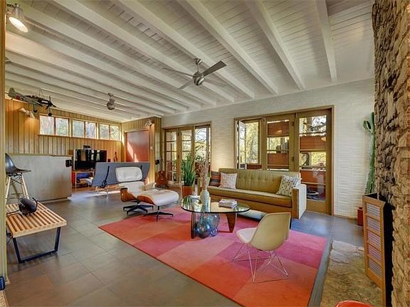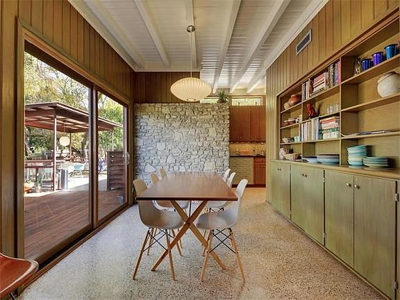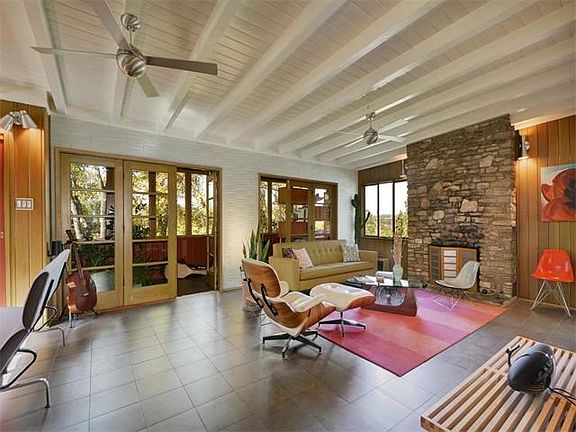 FURNISHED AD Stenger with treetop views of Zilker Park. Bring your executive clients looking for an amazing mid century modern home. Terrazzo floors, vaulted ceilings with exposed beams, stone fireplace, and updated kitchen / baths with Heath ceramic tile. Incredible deck with covered dining area. Private.