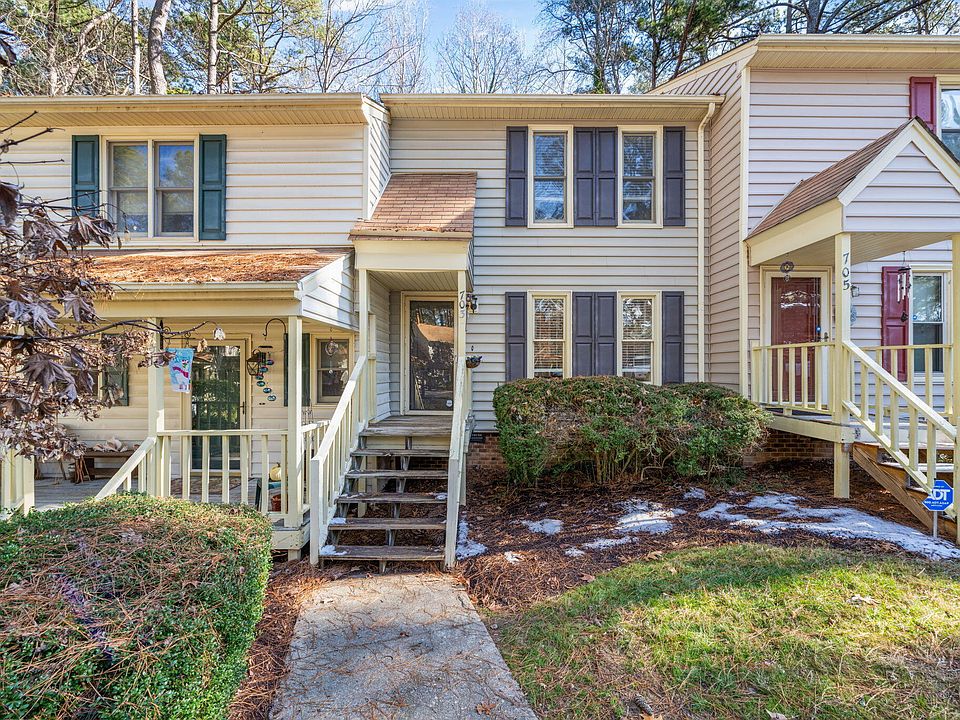 Charming townhome in the heart of North Raleigh! This home features 2 spacious bedrooms, each with its own attached bath for added privacy. Enjoy an open floor plan with a cozy masonry fireplace in the living area, perfect for relaxation. The cook-friendly kitchen is ideal for meal prep, and luxury vinyl flooring throughout (except in the kitchen and baths) adds a modern touch. Nice quiet, private lot. The community offers a relaxing pool, and you're conveniently located near Raleigh Greenway trails, North Hills Mall, Whole Foods, dining options, and easy access to I-440 & I-540. A great location for both convenience and comfort!