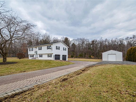 Beautiful 3BR, 2 bath bi-level w/ a car enthusiast or hobbyist’s dream shop in country living in the Pleasant Valley SD. Nestled on a 1-acre lot with a stamped asphalt driveway & fully finished 30x50 pole barn. This home gets a ton of natural sunlight. First floor includes a living room overlooking the front yard w/ mature Japanese Maples & Cherry Blossom trees, laminate, new carpeting, an open kitchen/dining room w/ sliding door to the back deck, perfect for hosting! Upstairs hosts 3 bedrooms, full bath & the primary suite w/ its own full bath. Lower level features new luxury vinyl plank flooring, dry bar & entrance into the oversized 2-car garage w/ plenty of storage & laundry area! Garage has brand new carriage doors. Outside, enjoy the level lot, rear deck w/ storage & detached pole barn w/ epoxy coated floor, 200 amp service separate from the house, heat, ac, plumbing for compressed air, LED lighting & 12’ electric door. Located minutes from major highways, necessities & the SD.