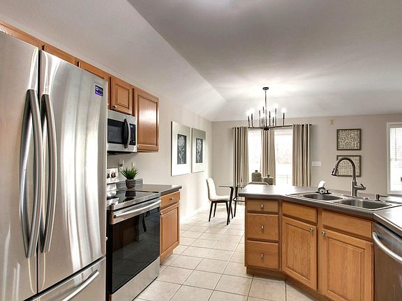 Abundant natural light floods this open floor plan ranch with 2500 sq ft of finished living area and a lovely wooded view. The master suite features a trey ceiling and a large walk-in closet. The carpeting throughout the home is brand new and the whole interior has been freshly painted. So much else is new, too, including recent replacement of all of the appliances; the stainless steel refrigerator, dishwasher, disposal, range/stove, microwave and the washer/dryer in the main floor laundry, and all convey. The lower, daylight level has just been finished with a large family room, 4th bedroom, and 3rd full bath. This well-built home features 2x6 construction and 9' ceilings. The attic (accessed through the garage) offers plenty of room for future expansion. The back yard is fenced with black aluminum fencing. Located in the Meadow Creek subdivision, you'll love the peaceful setting and occasional view of deer from your backyard and the neighborhood bicycle path and playground.
