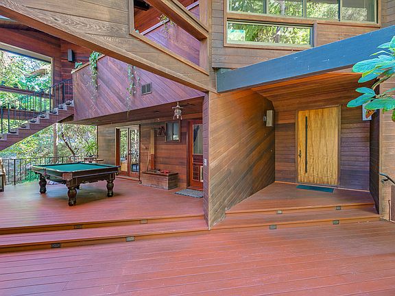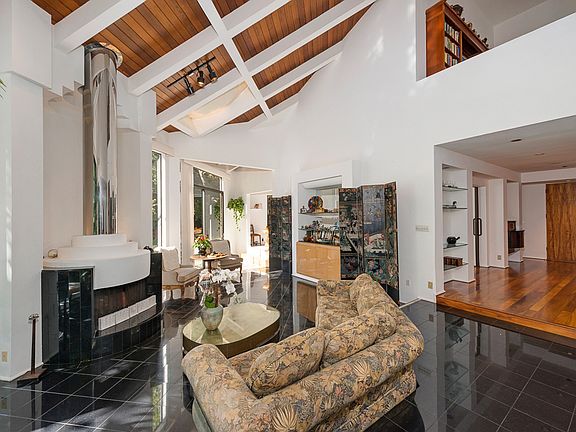 Adjacent to the creek, this low-key house offers a retreat from the City of Angels. Main floor plan is traditional, with formal living room, 2-story ceilings, and dining room adjacent to cook's kitchen and breakfast area with its inviting family room. The upper level includes master suite plus 2 additional bedrooms and bath. Below the house is a large bonus area, good for a game room or office, which opens to the grounds. Located close to Sunset, Rustic Canyon Park and the Pacific Ocean.
