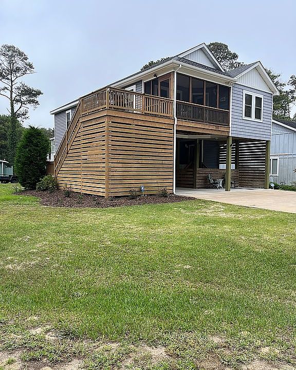 Beautiful home situated on a corner lot just moments away from the sound. Offering two master bedrooms with full baths, one upstairs and one downstairs. Perfect for it wanting to buy for a AirBNB or monthly, weekly, seasonal, or yearly rentals. Can be used as two separate rentals. But absolutely perfect for a permanent home at the beach or a second home for your family vacations. So many options with this home! Granite countertops, decorative wide base boards, hardwood floor in living area, screened in front porch, outside shower, beautiful decking ,fenced in back yard, no flood insurance needed, and more. A must see. Call owners for a showing. 252-564-2989