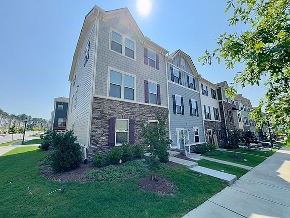Location! Location! Location! Beautiful 4 bedroom, 3.5 bath townhome, 2 car garage and a large deck! 2nd floor features open floor plan concept with modern finishes, gorgeous bright kitchen overlooking breakfast area and living room. 3rd floor has primary suite, 2 secondary bedrooms w/shared bathroom and a laundry room. 1st floor bedroom with full bath which can be used as guest room, media room, gym, office or even a play room. Enjoy your morning coffee on the back deck! Walking trails in the community! Easy access to RTP, Hwy 55, 540! Minutes from dining, shopping, movie theater and recreation! Popular school district!