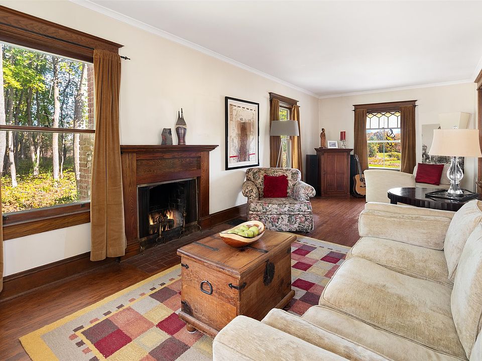Oversized windowsSunny gardenSweeping front porchMajestic silver maplesWifi enabled appliancesWood-burning fireplaceGraceful columns