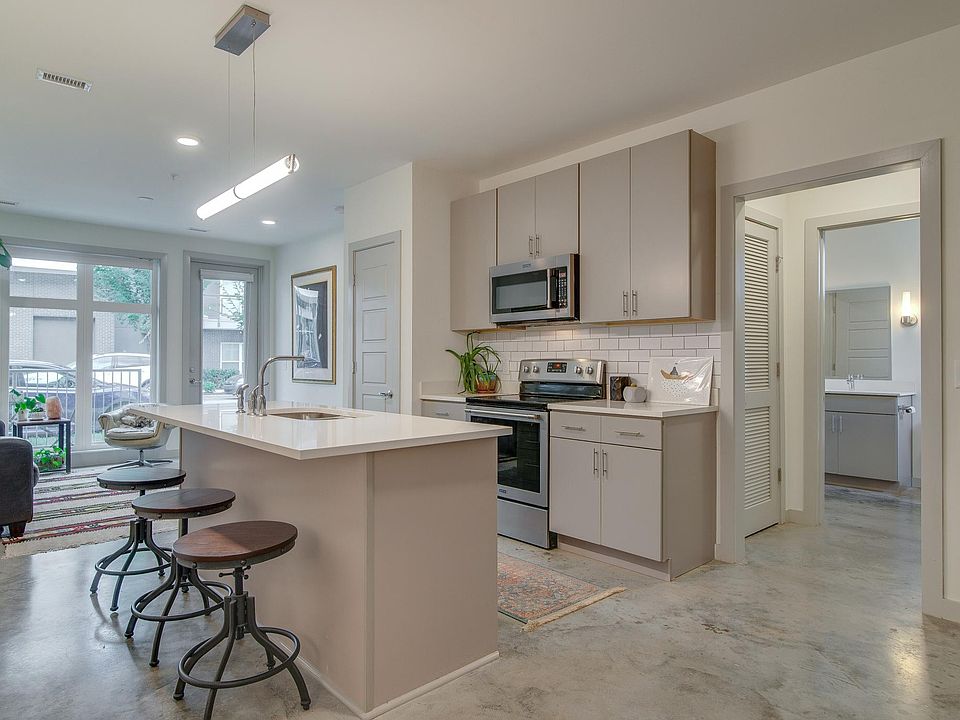 Park your car, you won't need it at this perfect East Nashville location! This open, bright condo offers large living spaces w/soaring ceilings, polished concrete floors, extra storage and two entrances. The beautiful kitchen is complete with stainless steel appliances, quartz countertop, HUGE island, and so much cabinet and pantry space. Assigned parking spot is just steps from the back door of this first floor condo and a quick walk to 5 points, grocery stores, coffee shops, and everything else this area is famous for! The building was built in 2018. Small dogs ( 25lbs) & cats allowed with additional security deposit. Utilities not included. Two persons maximum and both inhabitants need to be on the lease. First and last month rent, and $1000 deposit required at the start of the lease. During application, credit check and proof of employment is needed for lease consideration. The unit is non-furnished. Utilities not included in lease.