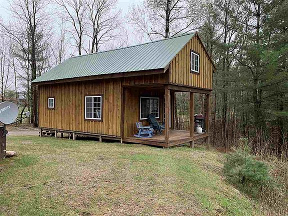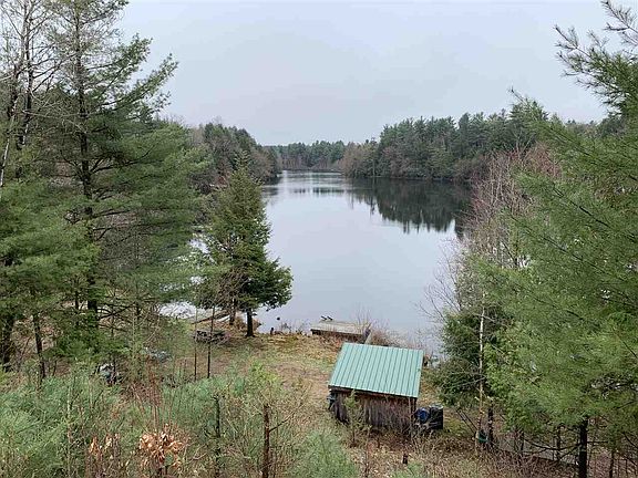 Located on Smith Pond, here is your chance to purchase 9.3 acres, 2 living structures, several outbuildings, and over 400 feet of water frontage. The first home/cottage, is finished and tastefully decorated. This could be a year round residency. The 3 season room over looks the pond. Inside the home the living room has vaulted ceilings and flows nicely into the kitchen/dining area. There are 2 bedrooms on first floor, and one bedroom upstairs. The second structure is unfinished on the interior, and also has a covered porch that overlooks the pond.