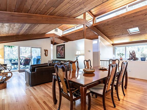 Escape to the serene countryside in this mid-century post & beam Deck House, on over 6 ACRES of land. This sophisticated retreat offers a flexible floor plan, perfect for entertaining. Natural light showcases the updated interior. Outside, a lush landscape features native NC shrubs, plants, and a vegetable garden with fenced in 1 acre area. Enjoy county taxes and CH/Carr Schools, with Carrboro just 3 miles away and UNC 5 miles away.Recent upgrades-new wood decking off Primary BR & LR, with rainproofing underneath. A backup GENERAC automatic generator with a 250 Gallon Propane tank ensures uninterrupted power supply. The home boasts a new Trane HVAC system, Water Softener, Water pressure tank, and a well water pump, all installed in 2020. 2022, the Primary/downstair Bath renovations-new toilets, granite ctrtops, heated towel warmers, and cabinetry. Enclosed steam shower in primary bath. The kitchen revamped with a 48-inch AGA induction range, SS-dishwasher, new Maple cabinetry, & granite ctrtops with counter electric receptacles. New carpet downstairs. No HOA