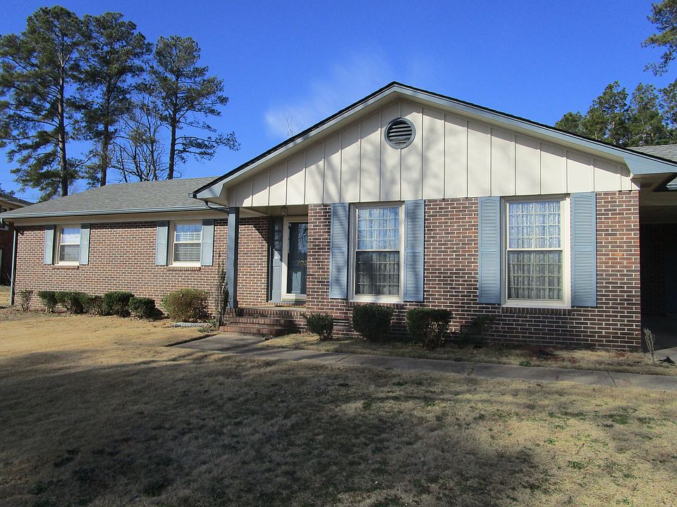 Adorable brick ranch! Spacious bedrooms, hardwood floors, large living room, den and formal dining room. 2" faux blinds and replacement windows throughout. Updated baths, spacious kitchen with built in wine rack! Large laundry with storage! New water heater, new refrigerator coming soon! **One year lease with option to purchase will accept backup offers in one year.** Fenced yard with small garden area and storage building large enough for a man cave! Patio is just off den with sliding glass doors for convenience.