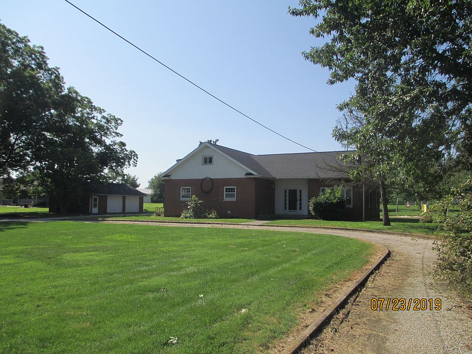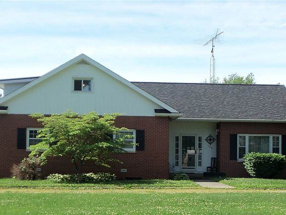 Country! Quality built brick 1.5 level home on 1.75 acres. Foyer w/slate flr, some hardwood floors, living room, 2 baths + shower in basement, 2 BR on main level, 2BR up, full bsmt, det brick bldg 32'X24', utility carport, covered patio, storage barn & tool shed.