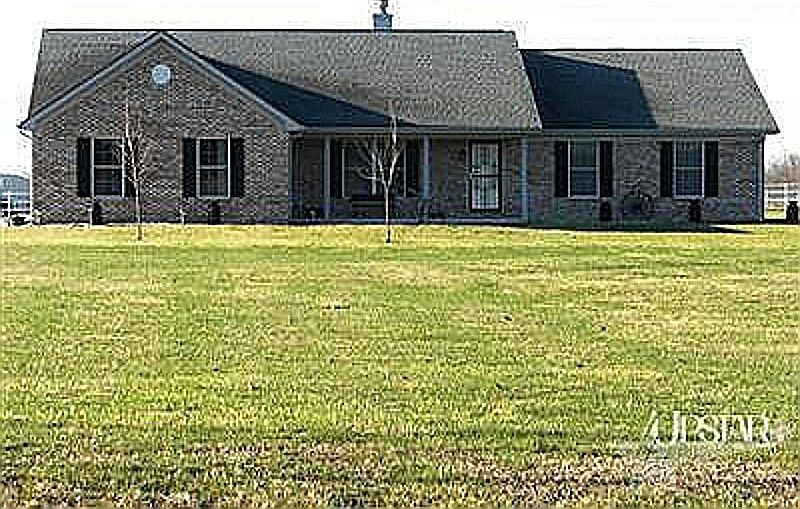 Come to the country and see this beautiful 28+ acre horse farm or mini-farm.Newer split bedroom,brick ranch with over 2,100 square feet of living space. 4 bedrooms, two baths, open kitchen, spacious dining area, woodburning fireplace and light,bright sunroom overlooking peacefull pastures! Huge 80x40 foot barn w/hay loft has it's own office (or could be apartment) tack room,and bathroom! Barn has 6 horse stalls(3 stalls rented for instant income)Barn also has two 8 foot sliding doors, a 12 foot sliding door and a 8x12 wash stall. The property consists of 2 hay fields (total of 11 acres) and a 5/8 mile limestone training track (field around track also used as hay field), in addition four 1/4 acre fenced paddocks currently used for horse pasture. Yard around house is perfect for the swimming pool or koi pond that you always wanted. Patio is ideal for that cook out or for entertaining. Put on your jeans and casual clothes and find out how relaxing and enjoyable country living can be!