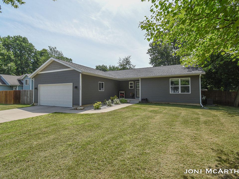 Welcome to 703 Evergreen St., your dream home awaits! This beautiful Ranch, nestled at the end of a peaceful cul de sac, offers the perfect blend of comfort and convenience. Step inside this spacious 2,350 square feet of finished living space. The fenced-in back yard and delightful deck provide an oasis for relaxation and outdoor gatherings. Prepare culinary delights in the elegant white kitchen, adorned with up-to-date paint colors and stunning hard surface countertops, offering both style and functionality. The finished downstairs area adds versatility to the home, providing extra space for entertainment, recreation, or a cozy retreat. With 3 bedrooms and 3 baths, there's plenty of room for the whole family. Ample storage ensures you can keep your living spaces clutter-free and organize just minutes from town and schools, making daily commutes a breeze and keeping you connected to all the amenities Greenville has to offer and only a 30 minute drive to Grand Rapids. Sellers just had new leafFilter gutter guards put on and also have a new shed in the back yard for extra storage.