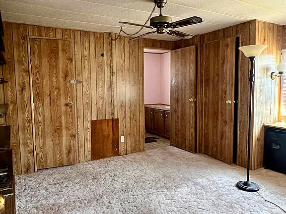 This house can be the perfect home with a little elbow grease. It's a 14' x 65' home with an addition that is approximately 9'4' x 23' 9' bringing the overall square footage of the home to around 1,117 sq ft. The home has 2 bedrooms with 2 full baths and a split floorpan. As well as 3 storage sheds. Alot of home for a little amount of money. Located in a 55+ park.