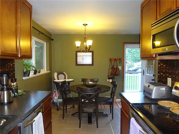 Picture perfect, irresistibly renovated, 3BR/2BA ranch packed full of personality and tucked quietly on coveted non-through street with lush wooded backdrop for added serenity. Showcasing an upscale richly-appointed ceramic-underscored kitchen with warm-hued wood cabinetry, showy copper-tone accent backsplash, new quality stainless appliances, and inviting sundrenched dinette displaying park-like backyard views. Generously-proportioned living room illuminated by exaggerated picture window with southern exposure, 3 hardwood-underscored meticulous bedrooms in neutral theme, and modernized light and bright ceramic-lined main bath with plentiful storage. Retreat anytime to the unrivalled walk-out lower level fully finished and complete with expansive game room, attractive equipped 2nd kit, hub-style eating peninsula/bar, 2nd recently-renovated bath embellished by rustic barn door, tidy ceramic-underscored laundry area, and enviable walkout access to patio w/lush serenity. Impeccable!