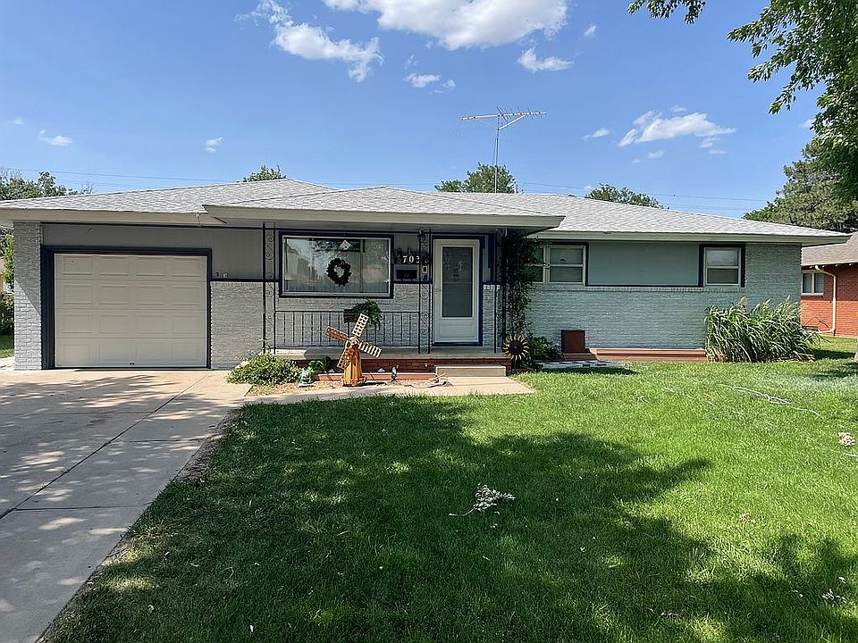 This house is for sale by owner, you can call me at 620-275-5726. Freshly painted, new carpet, new tile in entry way and bathroom, new bathroom sinks, single attached garage with a double detached 24x24 garage with a heater, 8x12 storage shed. Sprinkler system, washer and dryer on main floor, 3 bedroom, master bedroom has bathroom with shower. Full basement that is half finished with lots of storage. New microwave and dishwasher never used.