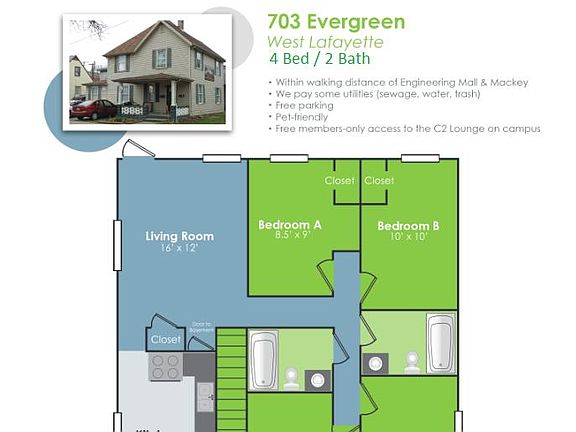 **PRICE IS PER BEDROOM** This 4 bed - 2 bath house is right off campus and only a 1 minute walk to the engineering side of campus. Residents pay electricity, gas, and internet. Rent includes water, sewage, and trash. Parking available, pet friendly, and in-unit laundry located in the basemen. Located directly behind our leasing office, you are near all the action! Call to schedule a tour! 8/17/2023-7/24/2024