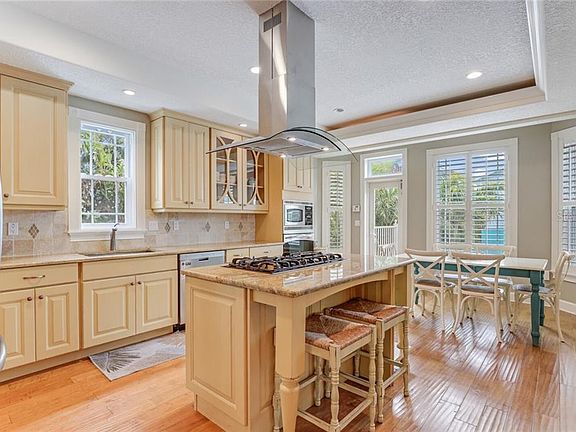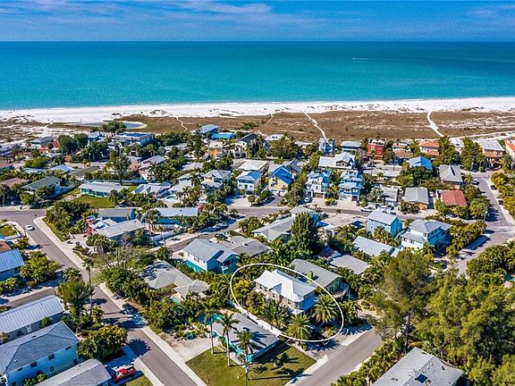 A fantastic location on the north end of Anna Maria Island. This lovely home is being sold turn-key furnished with tray ceilings, interior transom windows and with three bedrooms that have ample closets and en suite baths. The forth bedroom is the perfect space for the little ones with bunk beds or you could turn it into a space for a home office/den. The large kitchen offers plenty of space for the chef in the family with new stainless appliances and a gas stovetop. A spiral staircase descends from the kitchen to the new re-surfaced Pebble Tec pool and outdoor living room with built in grill and warming tray, refrigerator and gas fireplace. An additional half bath is shared with the utility room on the main floor. A most welcoming home with 9'4" ceilings, maple flooring, new dual zoned A/Cs, elevator, whole house generator, a water treatment system, tankless hot water heater, plantation shutters, a two car garage with plenty of room for a workshop and additional storage. Bean Point Gulf Beach access is just a short block away... This home is currently a popular vacation rental with over 90K yearly of income. Come see this fantastic home for yourself.