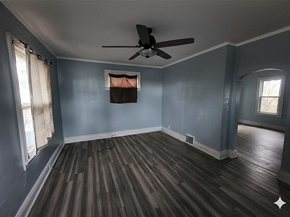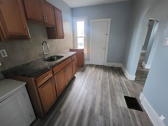 This 3 bedroom home has been nicely refreshed with updated paint and flooring in all living spaces, a converted back porch now functioning as a laundry room. The upstairs features gleaming restored hardwood floors and a stylish modern bath. Off street parking.
