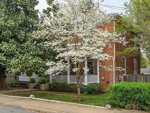 Downtown living in this beyond charming 1914 brick colonial. Unbeatable Belmont location under 5 minute walk to Charlottesville's best restaurants, shops, and music venues. Mature trees provide privacy for the classically southern front porch with ipe decking and space to relax. Upon entry you are greeted with a generous foyer featuring original hardwood floors and architectural details. Comfortable living and entertaining spaces on the main floor include living, dining, and kitchen all on scale to support a future addition if desired. Enchanting back porch, powder room off the kitchen, and queen bedroom/office off the front hall complete the main floor. Upstairs you'll find dedicated laundry room, full bath with clawfoot tub, and three bedrooms two of which are well sized for king beds with the third smaller being best suited for twin bed or office. Fenced backyard with courtyard ready to enjoy. Property extends beyond the fence but is partly leased by Lampo for another year. 400+ sq ft of standing crawl space for storage. Room to add off street parking on the front. Enjoy a truly walkable lifestyle in a charming home ready for you to move right in or expand to fit your needs in Charlottesville's most coveted neighborhood.