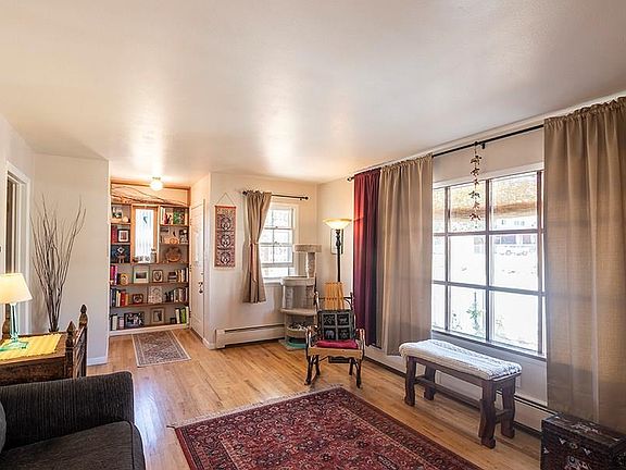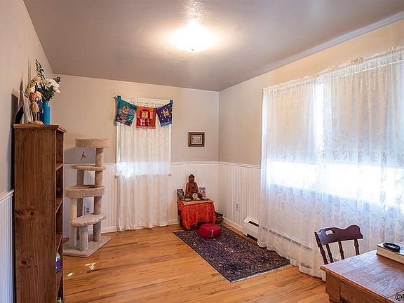 Peace emanates from this lovely home located right across the street from the main administrative building on the St. Scholastica campus with views of the Hogbacks. From the white picket fence to the crab apple tree (see pic. in bloom) to built-in bookshelves to a mullioned picture window, this home is full of distinctive elements that add charm as well as practicality. Radiant floor board heat makes for low utility bills, too. Two exceptional features are the white hardwood oak floors and several deep closets. The kitchen has been updated and feels large and light. It has an appliance garage, Corian-look countertops, & pullout pantry shelves. Outside, a quiet patio to the north shaded by mature trees invites nature appreciation & reflection. The single car garage has a workbench & pegboard with alley access. There is room for a possible dog run in the fenced back yard & several spaces have xeriscaping, flowers, & bushes. New hot water heater installed in 2019. When you tour, you will notice bead board wainscoting, Roman shades, a unique entryway window, & partial basement shelving storage. Located in the historic downtown Canon City district, this home shines in all ways.