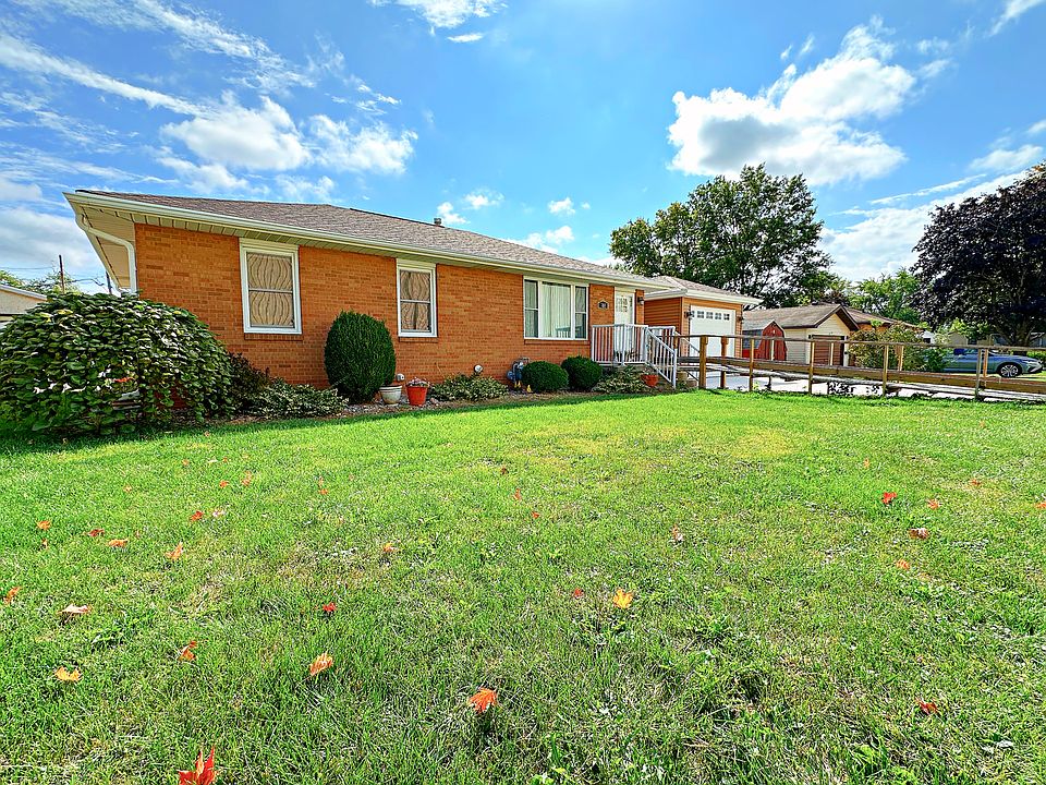 Introducing this 3 bedroom, 1.5 bathroom brick ranch offering the perfect blend of comfort, updates, and space. The welcoming living room is highlighted by a large picture window, while the roomy kitchen provides abundant cabinetry and dining space. A recently added family room elevates the home with vaulted ceilings, a wall of windows overlooking the pleasant backyard, a half bath, and a deep closet. Three main-level bedrooms offer generous closet space, with one currently converted to a convenient laundry room (easily reversible back to a bedroom). The full bathroom is designed with accessibility in mind, featuring a walk-in tub/shower. The full basement provides excellent storage, poured concrete foundation walls, and plenty of finishing potential. Recent updates include the house roof, gutters, some windows, and a new spacious 1 car garage with 8' doors. Additional highlights include 200-amp electrical service with circuit breakers, a beautifully landscaped yard with paver walkways, and a large storage shed. With its thoughtful layout, recent improvements, and appealing yard, this home is ready and full of potential.