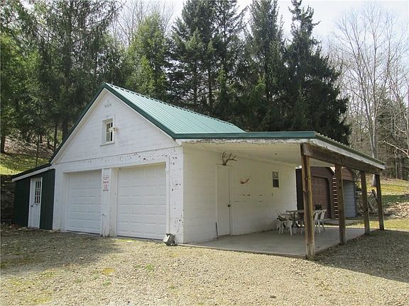 This listing has it all!! Acreage, seclusion, new barn, garage, pond, timber, dead end road, etc. Interior is pine tongue and groove. Enclosed sun porch off of the kitchen/dining area. Home has electric baseboard with additional heat of the floor furnace and the woodstove. The first level has a bedroom and bathroom/laundry room. In the loft area of the second level is an additional bedroom with large storage area. Heated 36' x 22' detached 2 car garage and attached to the side of the garage is an attached shop area and on the other side attached is a one car carport/patio. Large shed and an additional carport. Stocked pond with stream running through the property. Good flowing gravity spring and septic. Timber value. Comes furnished. A paradise for all. Must see!