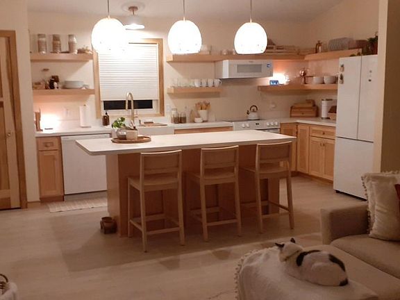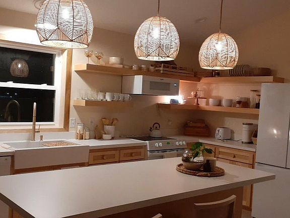 This home has a mid-Century vibe. Every nook and niche has been planned right down to the wicker drawer knobs and spectacular island lights. Every closet is designed for maximum efficiency. The gold-tone fixtures and faucets throughout the home scream high-end. You'll love the walk-in shower with ceramic bench, rain shower faucet, and hand-held shower wand. There are so many upgrades and unexpected improvements in this absolutely stunning home. Downstairs features a bedroom, family room and large walk-in closet. Home still has several manufacturer warranties available to the new buyer.