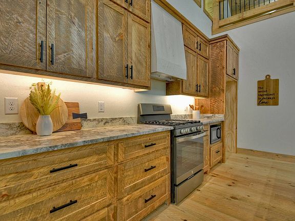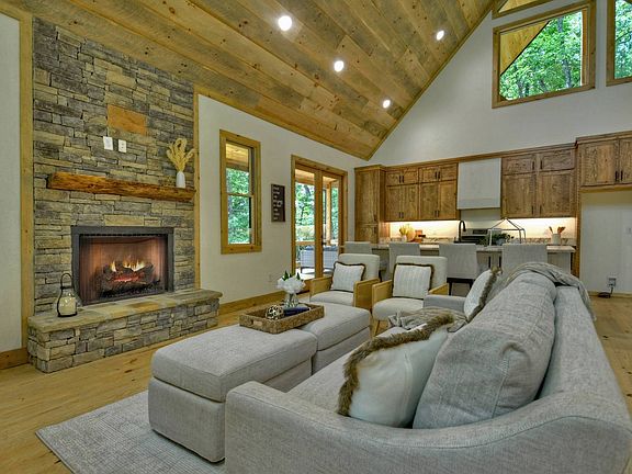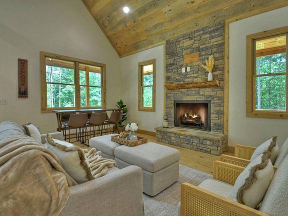 Nestled amongst the lush trees in the Grants Summit Mountain Community is this stunning brand new cabin with amazing curb appeal. Loads of deck space allow you to enjoy the outdoors as much as the indoors! Boasting everything you need for a relaxing weekend getaway or a short-term rental investment, this cabin offers a unique blend of rustic charm and modern elegance. As you step inside, the soaring cathedral ceilings will welcome you and greet you with an open floor plan that seamlessly flows from the large kitchen to the cozy dining and living area. The circular sawn hardwood flooring adds to the cabin's rustic charm and complements the leathered granite countertops. Warm up next to the beautiful outdoor stone fireplace after a day spent hiking in the mountains. With three spacious bedrooms and an additional sleeping loft, you'll have plenty of room to host your loved ones or guests. The finished terrace level with its gorgeous stained concrete flooring and wet bar is a perfect setting for gatherings. Short-term rentals are permitted in the community, making this cabin a superb addition to your rental portfolio. And with high-speed internet through ETC, you can stay connected to the world while enjoying the tranquility of this mountain retreat.