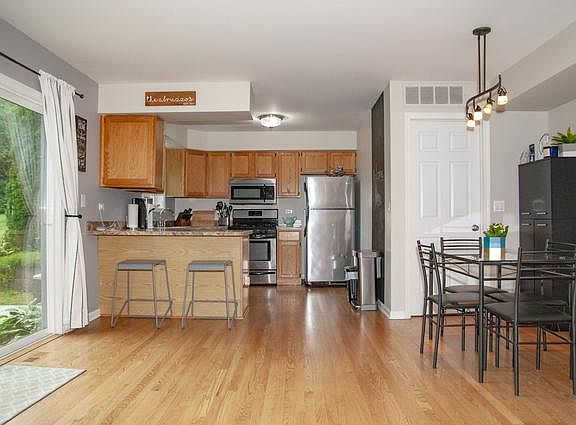 Beautifully maintained! This unit features hardwood floors throughout main level, new carpet on stairs, new laminate floors in bedrooms, Living/dining room offers slider to large concrete patio with large grass area, lovely bright kitchen w/breakfast bar and all stainless steel appliances, laundry in unit off kitchen, 3 spacious bedrooms. Huge master suite features his and her closets and private bath with dual vanities and soaker tub. Lots of storage,new vinyl flooring in laundry room, Washer & Drier 2 years old, gas fireplace and two car garage! Great location! Walking distance to Port Edwards, downtown!! Home warranty included. Must see it!