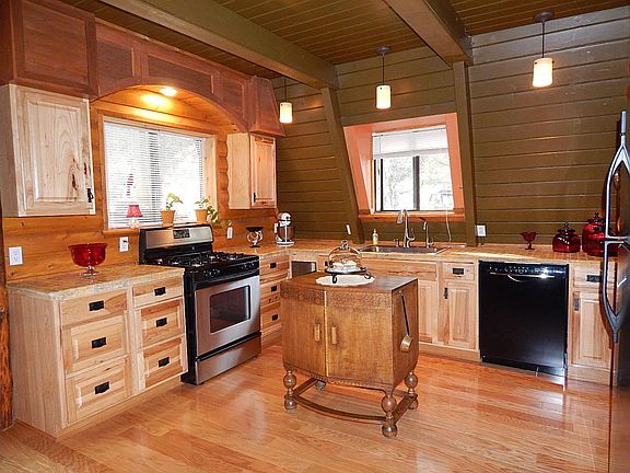 Charming beyond words! This recently remodeled Modified A Frame is remarkable. One loft bedroom, two bathrooms, 1049sf with guest quarters. Chef's delight in kitchen offers Gas range with a window view, almost new appliances, pantry and stone tile countertops. Full bathroom on main floor. Beautiful Spanish style curio cabinet, gas stove, open living area and dining area. Spiral staircase leads to massive bedroom with abundant closet space, full bathroom and two small decks with nice views. Covered back porch, large concrete front yard patio and two small upper decks all provide great views! Swiss style quest quarters has log interior, is roomy and includes a half bath and it's own stone patio. Huge storage shed, fruit trees, views of the Mogollon Rim are all part of this 0.24AC property