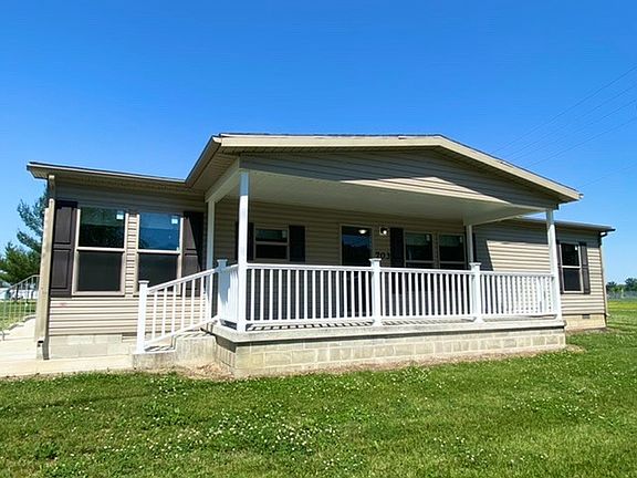 Large Corner Lot, 3bd/2ba Move-In Ready Home with Gorgeous Features! This 2019 Jones manufactured home has 1,400 square feet of living space with 3 bedrooms and 2 bathrooms. The home has never been occupied and is in New Condition! A stunning large concrete porch, covered and with railing will welcome you into this beautiful home. The spacious living room has an open layout to Kitchen. This spacious Living Room also has tasteful carpet, exposed accent beam, over sized windows for natural light, and window valances. The Kitchen is complete with a full appliance package of Frigidaire black 30" electric range (and tasteful vent cover & range hood), 18 CF 2 door Refrigerator, and 24" built in dishwasher. Cabinets are 42" Overhead, oil rubbed bronze knobs, backsplash at all cabinets, and double stainless steel sink with gooseneck faucet. The modern farmhouse finishes & design are pleasing. There is a spacious are for a table & chairs complete with a large window. Excellent work space with ample counter & cabinet space. The Primary Bedroom is spacious and has an En-suite bathroom and a WI Closet. The bathroom has an oversized vanity with backsplash & storage, framed mirror, and a 60' shower with seating & glass door. The additional two bedrooms have good sized WI Closets and are very large rooms, and have two panel arch top doors. A second bath is complete with a nice vanity w/backsplash, framed mirror and overhead lighting, completed by a 60" tub/shower combo. The large laundry room will accommodate a full size washer & dryer and has room for storage. Additional Features included: 36,000BTU Central Air, 30 Gallon Electric Water Heater, Siemens Breaker Box, Water shut off, Frost Free Exterior Faucet, 25 year Shingles, Ceiling Insulation R30, Sidewall Insulation R-11, Concrete Block Foundation, Automatic Foundation Vents, Nordyne 10kw Electric Furnace, Smoke Detectors & deadbolt locks, Six panel front door, nine lite rear door. Approved HUD Manufacturing Guidelines, Approved HUD Insulation Guidelines, City of Flora Building Codes & Regulations, State of Illinois Home Inspection which include Structural system, Exterior & Interior, Roof & Foundation, Plumbing & Electrical, Heating & Cooling. The lot IS included with sale. Rooms Sizes: Living Room 14x15.11, Kitchen 17x12.6, Bedroom 14x10.9, Bath 11x9.6, Bedroom 11.2x10.9, Bedroom 11.8x10.9, Bathroom 8.8x4.9, Utility 8.1x8.1, WIC 4.1x4.5, WIC 8.1x4.1, WIC 4.5x4.5