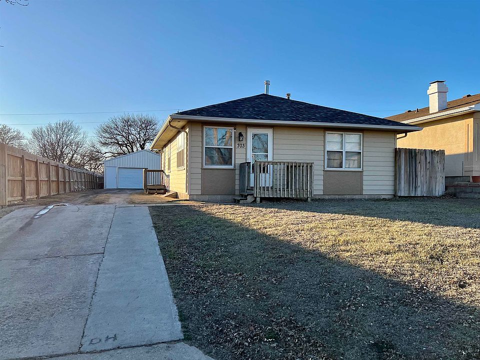 This adorable updated 2 bedroom bungalow is move in ready with laminate, carpet and tile flooring. Located near an elementary school, and shopping, it features an awesome remodeled kitchen with all kitchen appliances included plus a convenient laundry area. There is a 24 x 24 garage and shop in the Big fenced backyard. Contact Jan Ackerman 620-255-2440 for your private tour today!