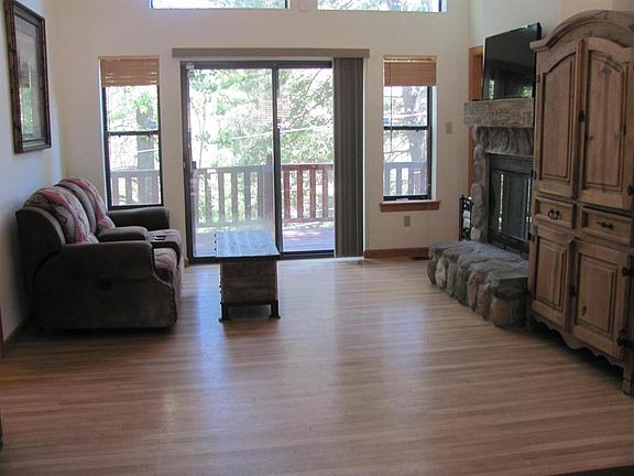 This single level village home is in beautiful condition, with wrap around deck and fenced yard, plus huge basement area for workshop and storage!! The floor plan is open with vaulted ceiling and floor to ceiling windows. The bedrooms and baths are split and both open up to the private deck over looking the forest....A real gem!!!