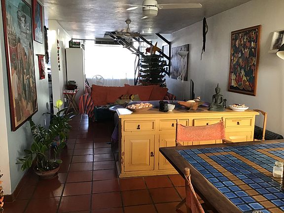 This duplex has a lovely rooftop terrace overlooking the community pool and the green mountains in the distance. The penthouse studio apartment is equipped with its own bathroom and kitchenette, while the main unit contains two full bathrooms, three bedrooms, kitchen, laundry and a large living/dining room area. Owner pays for condominium fees. Dates and prize may be negotiable.