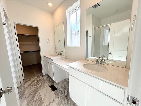 - Description: Master Bath Features Luxury Vinyl Tile Floor, Dual Vanities, Step In Shower, Walk-In Closet