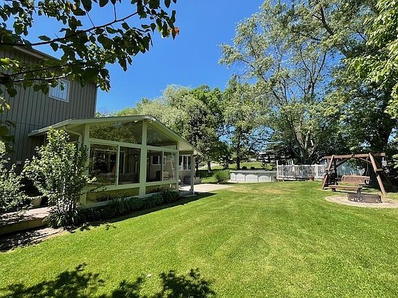 Nestled on a spacious level double lot, this custom-designed 3-bedroom residence boasts an open floor plan with soaring vaulted ceilings throughout. The main level features a luxurious primary suite, while the second level offers two generously sized bedrooms, each with their own vaulted ceilings. Entertain with ease as the kitchen seamlessly flows into a cozy hearth room complete with a fireplace, providing the perfect ambiance for gatherings. With ample counter space and first-floor laundry, convenience meets functionality. Step outside to discover a 3 season room leading to a sprawling patio, ideal for indoor/outdoor entertaining. The expansive family room situated on its own level, overlooks the kitchen and walks out to private Trex deck, creating a unique space for relaxation. Additionally, the unfinished lower level presents endless possibilities, including a sunken room perfect for a golf net and simulator. Relax in private backyard featuring ambiance lighting and waterfall.