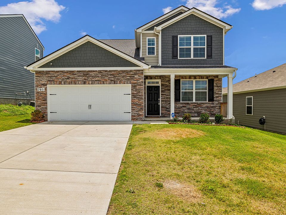 Check out this beautiful, like new 4 bedroom home complete with fresh paint located in the Woodbridge Glen subdivision! Enjoy the open concept living, dining and kitchen area equipped with granite countertops, a large island, pantry and stainless steel appliances. The spacious main floor owner's suite has not one but two closets! The primary bathroom features a large tiled shower and double vanities. There is also an additional room on the main floor that can be used as a formal dining room or home office. Upstairs you will find 3 additional bedrooms with walk-in closets and an enormous bonus room with 2 closets. If you are looking for storage, this home has it! Community amenities include underground utilities, a community pool, and a community playground. Floorplan photo is the general layout, dimensions may vary.