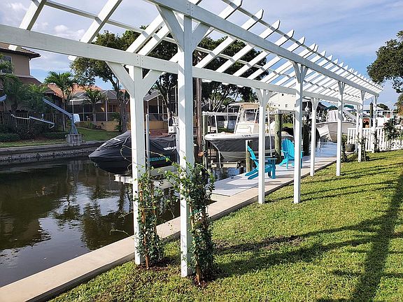 3 bedroom, 2.5 bath pool home has over 1500 sq ft of living space. Concrete seawall and multiple boat lifts.