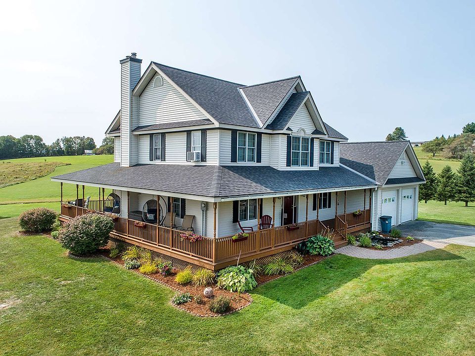 Custom built home on 11+ acres in East Montpelier. Minutes from Montpelier, this 4 bedroom, 3 bath New Englander style home imparts a country feel yet is near to all conveniences. A welcoming wrap around porch greets you as you enter into the foyer. The first level offers the opportunity for gracious open concept entertaining. The kitchen with a granite breakfast bar, opens to the living room with a fireplace, and French doors out to the private yard. There is a formal dining room and first floor bedroom which can be used as a home office. The laundry and powder room completes this floor. The second level has a spacious landing, 3 bedrooms and 2 baths. The primary suite has a spa like bathroom with jetted tub. 2 additional bedrooms share the third bathroom. The walkout, lower level bonus room, is the perfect family or game room. In addition to privacy the 11.4 acre lot provides the opportunity for urban farming, winter sledding and cross county skiing.