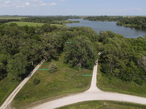 LAKE HOME - Acreage On Prairie Rose Lake. 1.83 Acres with 2 BR, 2 bath home, 2-car attached garage, garden shed and chicken coop. Lake is only 150 steps from the back door of this special property. Main floor includes living room w/fireplace & lighted collectable display case, dining room with full-length windows & view of the lake, remodeled kitchen, & main floor laundry. Upstairs features a master bedroom, master 3/4 bath w/balcony that overlooks the back of the property and includes a view of the lake. 2nd bedroom also upstairs. The wrap-around deck on the S & E side of the home is a perfect spot to view birds & other wildlife. Full basement, electric heat pump furnace, rural water. Low maintenance home with steel roof, steel siding, gutter guards & replacement windows.