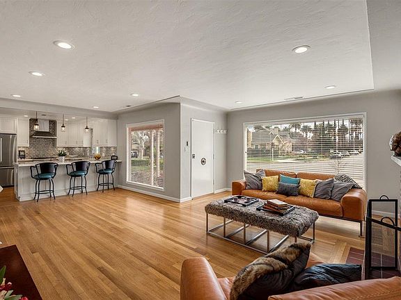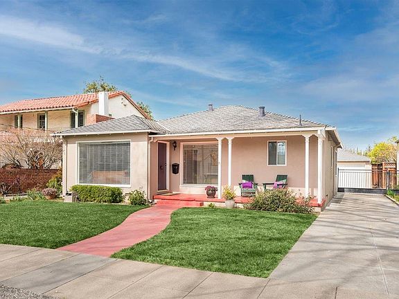 Tastefully renovated throughout! This two bedroom, one bath home has been extensively renovated, completed in 2019. Professionally designed, upgrades include heating and air conditioning, energy efficient double pane windows, remodeled bath, and kitchen, refinished hardwood floors throughout, tile in bathroom, and freshly painted. Elegant kitchen in shades of ice blue, features custom cabinets, Thermador gas range, Bosch dishwasher and refrigerator, and a wine refrigerator. Dekton solid surface countertop with waterfall edge in kitchen, and glass tile backsplash. Bath features shower over tub with glass enclosure. Gate across driveway opens to a two car garage in the rear yard. Tuff shed for extra storage. View of palm tree-lined streets of historic Palm Haven. Fabulous location with easy access for commute and to downtown Willow Glen with wonderful restaurants, boutique shopping and a Farmers Market. Welcome home!