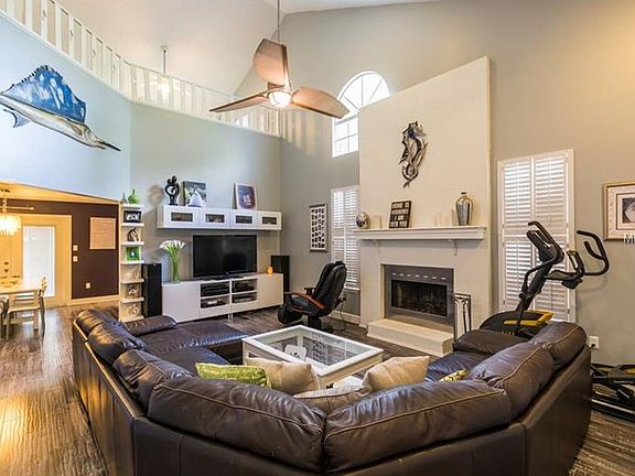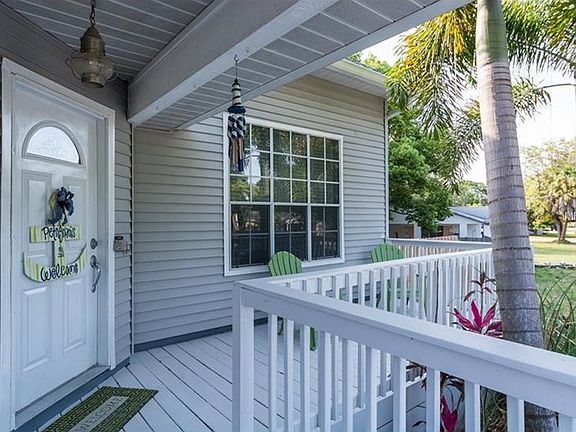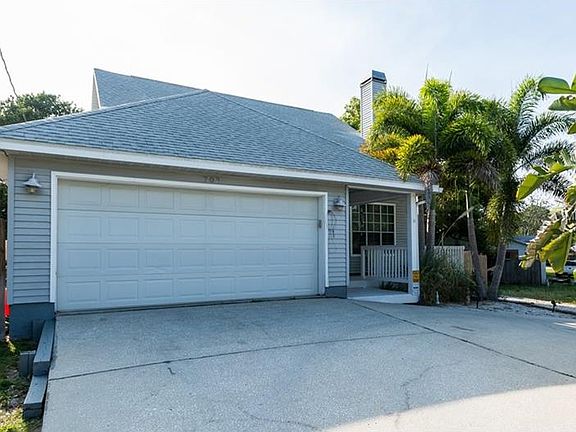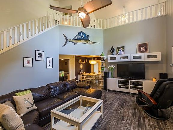 ** PICTURE PERFECT! ** Very impressive 2-story pool home just minutes from the beach! The house has a beachy, Key West style feel to it....right down to the custom seahorse railing! From the moment you step inside, you'll feel the dramatic impact that this home has to offer! High soaring ceilings and distressed wood laminate floors give the home instant appeal. A floor-to-ceiling fireplace is the focal point of the spacious great room! Toward the back of the home is a 1/2 bath, dining room, and eat-in kitchen! Island kitchen has been completely updated complete with newer cabinetry, glass tile backsplash, Corian countertop, and upgraded stainless steel appliances! Downstairs master suite has a large walk-in closet and private bathroom! Master bathroom is newly remodeled with a separate garden tub and walk-in glass shower with slate tile finish! Upstairs are the other 2 bedrooms, guest bathroom, and loft area that works great for a kid's play area or possible a home office! Upstairs bathroom is beautifully redone also, and includes a furniture style vanity with marble countertop and walls trimmed in wainscoting! Windows have 3M solar shield window film and wood Key West shutters/blinds! Step outside the beautiful French doors to a tropical oasis! Covered patio & a large deck is great for outdoor entertaining and BBQ's! Solar-heated screened pool is in a big backyard that is very private and fully fenced! Dog run & room to park RV/boat too! Newer a/c & pool pump! A showplace inside and out!