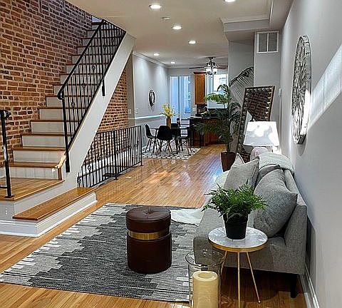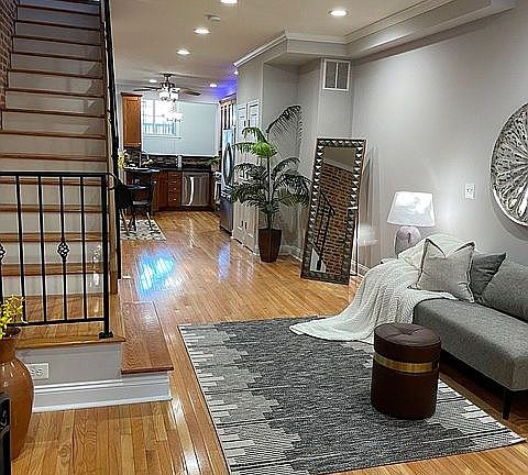 It is a 3 level Row home with a fully finished basement. There are 2 Bedrooms & 3 full Bathrooms. You will enjoy spending time on any of the 3 level Decks that can be accessed from either the kitchen area or a bedroom, all leading to the roof top deck that is just waiting for you to add your own vision. ALWAYS have your own private parking spot with the oversized garage, that offers EASY Access from the alley. The home also has wood-Vinyl-tile-new carpet flooring, all New faucets, new lighting, gas fireplace, large Gourmet kitchen, Granite, SS appliances, Refrigerator, Stove, Under Cabinet Microwave, Dishwasher, Garbage Disposal, Washer & Dryer, LOTS OF CLOSET SPACE. Located in Brewers Hill / Canton with close access to 83-95-97-695-895. Pictures don't do the house justice. all3 Decks were just re-done w Trex. Silicone Roof just re- coated (2021 estimated life 15-20 yrs). AC just serviced & Freon topped off. Furnace serviced - gas Heat - electric hot water. 1 year Home Warranty. call-text-or email 443-324-7839 j.padnick68@yahoo.com we cant wait to hear from you.