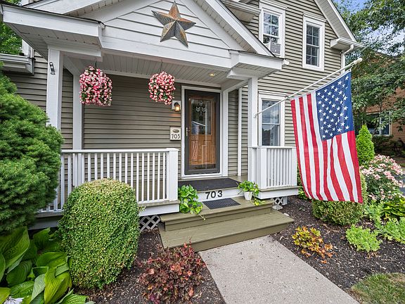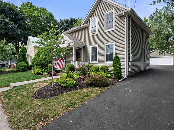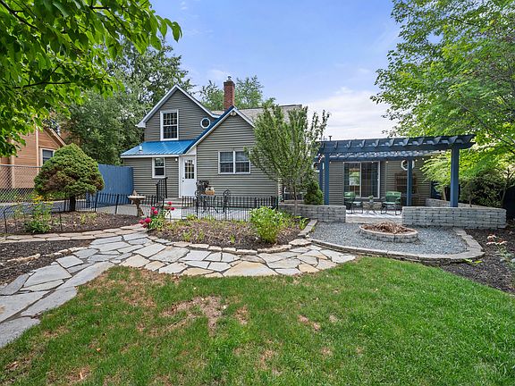 Looking for that BACKYARD SANCTUARY & DREAM HOME? Winding slate stone walkway leads you to the delightful stone patio, charming pergola, concrete patio, and cozy fire pit area, while taking in breathtaking views of plentiful landscaping, mature trees, charming garden shed; all enclosed by fencing... enjoy outdoor living within this magical setting! A 2 1/2 car garage, 2021 new asphalt driveway and an inviting covered front porch complete this Sycamore charmer! A beautiful leaded glass front door opens into the quaint foyer area with coat hooks. The welcoming Dining Room presents wainscoting wall detail, chair railing, walk-in closet, stunning hardwood flooring, oiled bronze chandelier and 2-way built in display shelving. Decorative columns and a wide opening, step down into the 21'x19' Living Room boasting a gas log lit fireplace embraced by custom millwork; a transitional rustic look! 3 side-by-side windows with Roman shades, vaulted ceiling, recessed lighting, ceiling-light fan, white chair railing and another side of built-in display shelving add ambiance and comfort to this favorite gathering room. To complete this wonderful Living Room 2008 addition, a bathroom was also added to this expansive floor plan with Kohler toilet, oval cabinet mirror, granite vanity top, and convenient stackable washer and dryer! Sliding glass doors open out onto the stone patio and pergola, and its extraordinary setting! Through the arched opening, a chef's delight kitchen features KraftMaid raised maple cabinetry, dovetail and pullout drawers, undermount lighting, white wainscoting wall detail, stainless steel appliances and Roman window shades. Double pocket doors open into the 1st level primary bedroom suite presenting more hardwood flooring, built-in wall shelving and bonus office space with modern glass sliding closet doors. The remodeled private bath (in 2016) hosts shower glass door rail system, shower head and handheld sprayer, white wainscoting detail, built-in linen cabinet, comfort height vanity, privacy window, Kohler toilet and upgraded fixtures; a spa-like retreat indeed! White upper-level staircase spindled railing and plush carpeting invite you into the 2nd primary bedroom suite or if you prefer, could create an upper level family room space to share! New crystal-look semi flush light fixture with built-in fan, mirrored closet doors, wainscoting wall detail and another private bathroom! Pocket door leads you to this 3rd bathroom with ornate vanity, brush nickel modern faucet and lighting and tile surround shower. Other two bedrooms also have plush carpeting. White trim and white paneled doors, arched openings, neutral interior color schemes, gleaming hardwood flooring and window treatments, add charm and beauty to this lovely home. SELLER UPDATES & FINE UPGRADES LIST available in the MLS under "Additional Information" tab and at the property. This is a wonderful opportunity to LOVE your new HOME and where you LIVE!