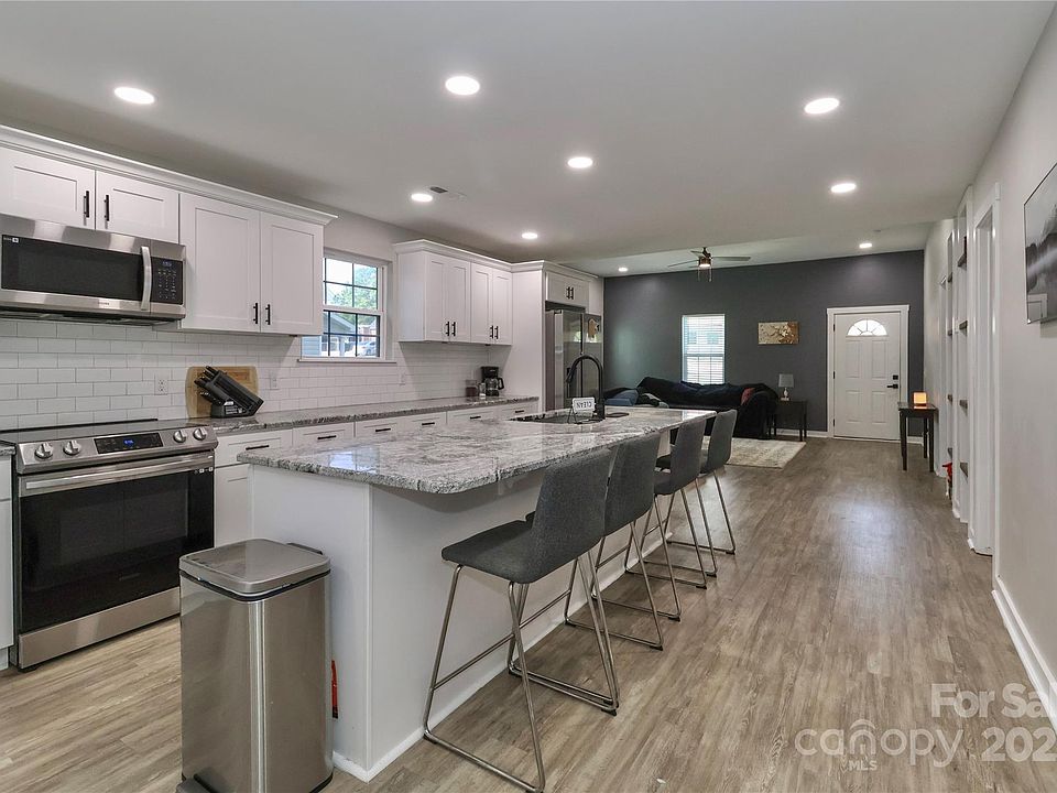 Fully renovated in 2022 and full of charm! This 3-bedroom, 2-bath home blends timeless character with modern upgrades from top to bottom—new roof, HVAC, flooring, appliances, insulation, and more. The open floor plan centers around a chef’s kitchen with granite countertops, stainless steel appliances, soft-close cabinetry, spacious island under recessed lighting, and modern windows—step in and you’ll be surprised how quiet it feels! Outside, enjoy your own backyard oasis with a wood privacy fence and a deck made for morning coffee or evening entertaining. A true must-see gem!